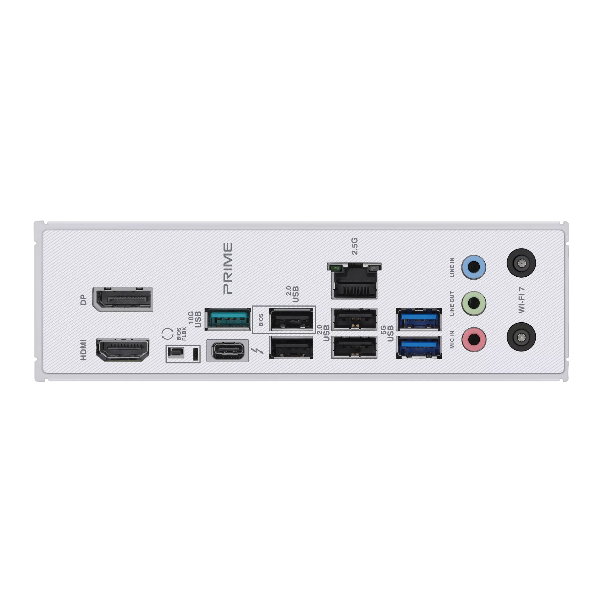 הוא כולל חריץ PCIe 5.0 x16 לכרטיס מסך דור הבא, ארבעה חיבורי M.2 (כולל PCIe 5.0 ו-M.2 תומך SATA), רשת 2.5Gb Ethernet ורשת אלחוטית WiFi 7 עם Bluetooth 5.4. בנוסף, חיבור Thunderbolt 4 Type-C בחלק האחורי מעניק גמישות לחיבור מסכים, תחנות עגינה והתקני אחסון מהירים.