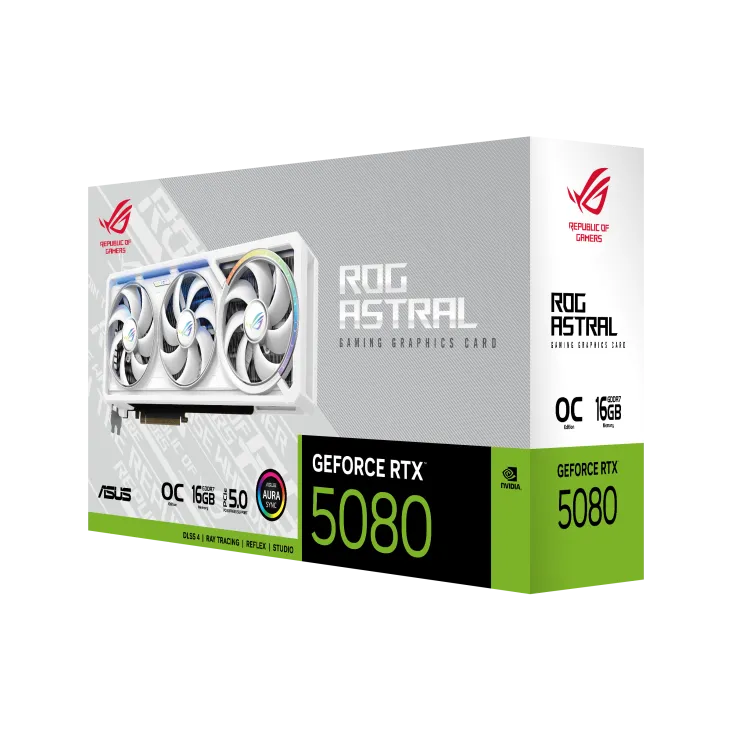 ה־ROG Astral 5080 White נועד לשבור מגבלות: קירור אוויר מתקדם עם ארבעה מאווררים, הספק ויציבות לעומסי AI ו־Ray Tracing, ועיצוב לבן יוקרתי שמשלים כל מראה “all-white”.