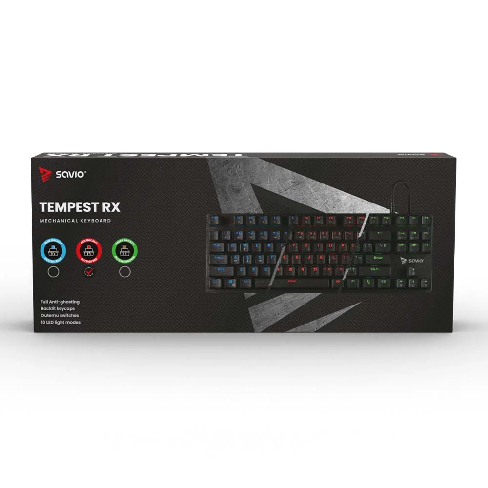 מקלדת גיימינג מכנית SAVIO Tempest RX TKL Outemu RED